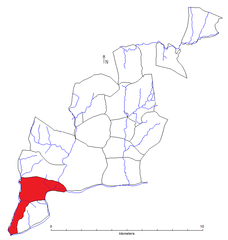 Situación de la parroquia San Pedro de Arantei en el municipio de Salvaterra de Miño (Pontevedra) con su red hidrográfica.