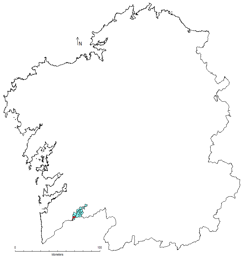 Situación del municipio de Salvaterra de Miño y sus parroquias en Galicia.