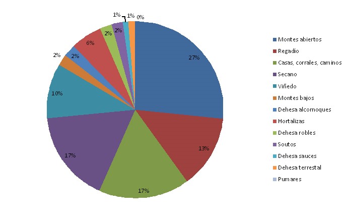 Interrogatorio del Catastro de Ensenada, Respuestas Generales. Porcentaje de medidas de tierra según la respuesta 10 en la feligresía de San Pedro de Arantei (Salvaterra de Miño, Pontevedra).