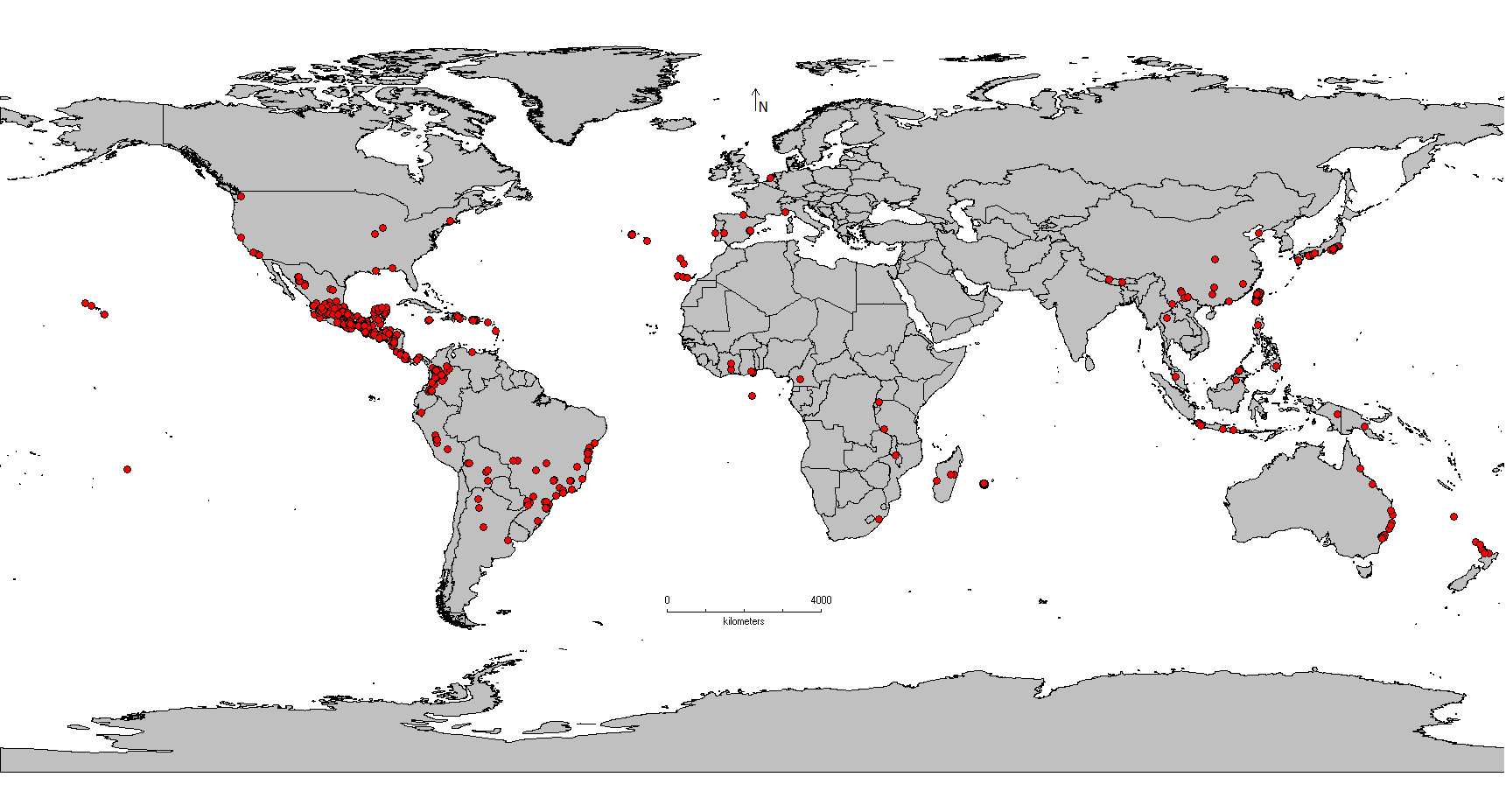 Distribución de Sechium edule (Jacq.) Sw. en el mundo. Portal de Datos GBIF.
